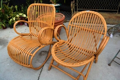 Lot Description:2 x painted vintage split cane chairs