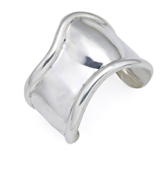 Designed by Elsa Peretti, the open cuff of contoured lines in silver. -