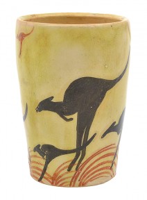 hand painted repeating kangaroo motif, painted signature and date to base, 12cm high (hairline crack to rim) -