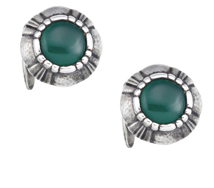 Of stylised floral design, centrally set with green chalcedony, to t-bar fittings, in sterling silver, reference 2. -