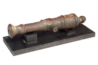 Lot Description:An Indian Bronze Miniature Cannon Barrel, A Land Deed And Bronze Beaker