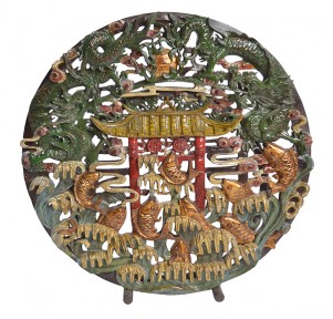 Lot Description:A Polychrome Carved Plaque, Leaping The Dragon Gate
