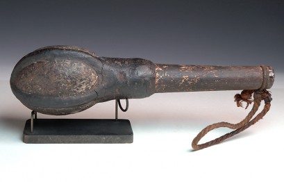 wooden handle, fastened with resin/clay mixture, with heavy stone head, 36cm long
