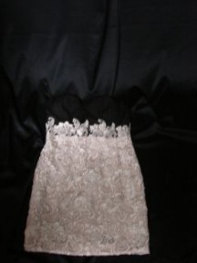 with back zip, size 12, black lycra contrasting cream guipere lace overlay; Good condition. Tag reads Elle Zeitoune"" -