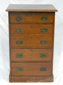 Lot Description:A cedar cabinet with five graduated drawers with brass recessed handles
