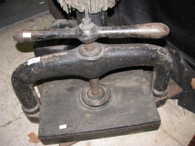 Lot #1095 - An antique cast iron book press with original black painted finish