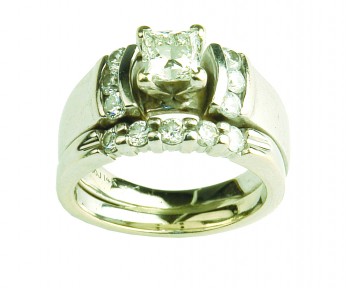 Lot Description:A 14ct. white gold diamond solitaire ring and matching wedder