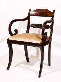 together with a pair of carvers with crested top rail, carved horizontal centre splat with central roundel medallion and upholstered drop-in seats (8)