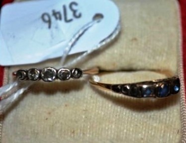 together with an 18ct 5 across diamond eternity ring, note: missing one end diamond