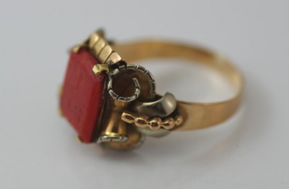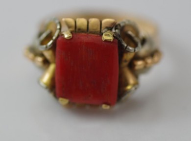 Lot Description:Vintage 9ct yellow gold and coral ring