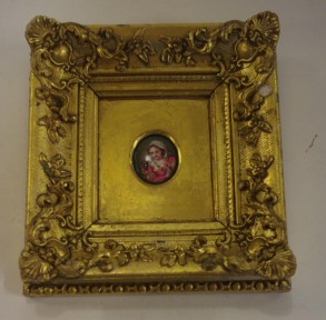 depicting a girl holding a mask, 17cm x 16cm (frame) -