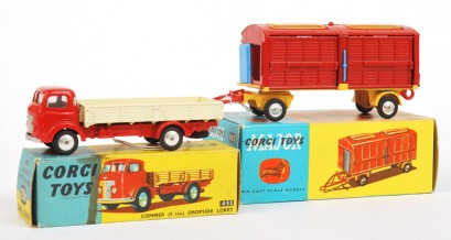Corgi Major 1123 Chipperfield'S Circus Animal Cage, With Unused Decals, 2 X Lions, 2 X Lionesses; And 452 Commer (5 Ton) Dropside Lorry, Red Cab, Cream Tray, With Hook (VG-E Boxes G-VG) (2) -