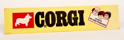 Metal On Board, Yellow With 'Tested By The Corgi Technocrats' To Front With Image Of Three Faces, Some Discolouration To Corners (G) -