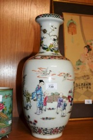 Lot #739 - Large Chinese vase decorated with various scenes of mothers with children in an outdoor setting