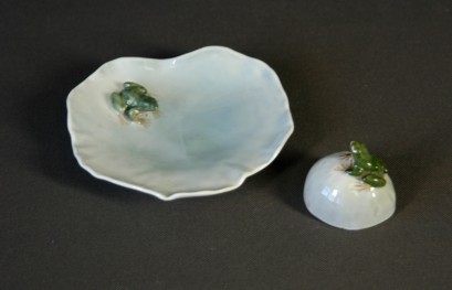 Incl. Frog, lilypad dish & stone with resting frog applied. Both stamped to undersides.