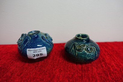 Lot #295 - Pair of Australian pottery blue and green squat gumnut and leaf vases