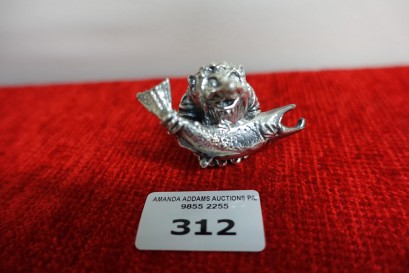 Lot #312 - Signed Norway sterling silver mythological figure holding a fish
