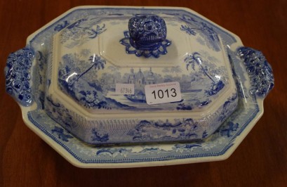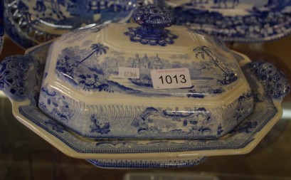 Lot Description:Staffordshire blue & white lidded tureen and cover