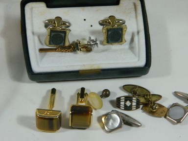 Lot #227 - A Collection of Men's Cufflinks including Mother of Pearl, Enamel