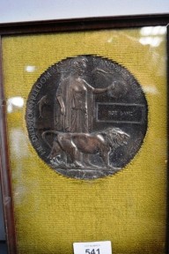 Lot #541 - WWI commemorative death plaque for Roy Lahz