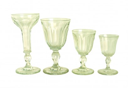 comprising: 13 champagne flutes, five red wine glasses, 15 white wine glasses and 20 liqueur glasses. Unmarked, pre-1930s. -