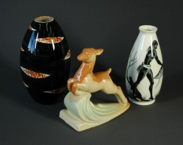 Incl. Diana leaping deer, Studio Anna Aboriginal woman vase, Braemore Pottery (?) vase.