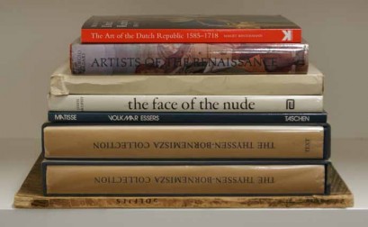 quarto. 2 vols. volume 1: text with two Christmas cards from Denise and Henry Thyssen-Bornemisza tipped in. volume 2: plates (mostly b/w) with tipped in addendum. ocb. gilt. d/w sunned. each in like slip case (some marks and shelf wear). with Brophy. J. The Face of the Nude: A Study in Beauty. quarto. col plates. ocb. gilt. illus d/w. Smeets Publishing Company. The Netherlands. nd. with Essers. V. Matisse. quarto. col & b/w ills. softcover. tears to paste down endpaper. Taschen. Cologne. 1987. Vasari. G. (Bull. G. trans). Artists of the Renaissance: An Illustrated Selection. quarto. col & b/w ills. ocb. illus d/w. Allen Lane. London. 1978. with Westermann. M. The Art of the Dutch Republic 1585-1717. octavo. col & b/w ills. softcover. Laurence King Publishing. London. 1996. with a publication regarding The Armand Hammer Collection and the French language publication, Soleils. (7). -