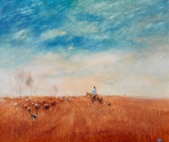 signed l.r.c. 'Sawrey', titled and inscribed verso ' The Traveling Mob, Hugh Sawrey' -