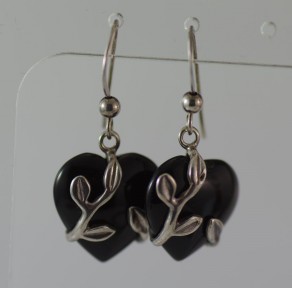 Lot #288 - Pair sterling silver and onyx heart earrings