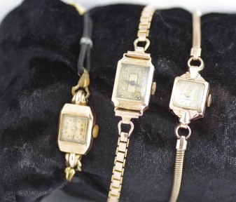including Titus (14ct back and case), unmarked (all 9ct including strap) and Cyrpus 9ct case -