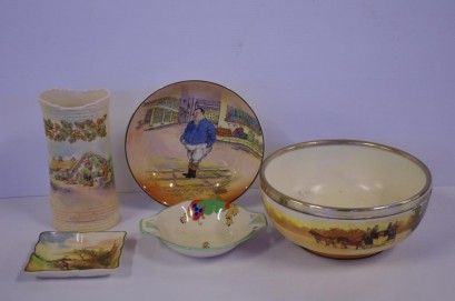 comprising of a Coaching Days bowl (a/f), a "The Fat Boy" shallow bowl (18.8cm diameter), an "Old English Inns" vase (18cm high) and 2 dishes -