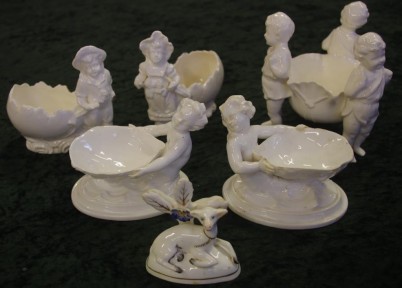 together four other Victorian white bowls and a early 19th century Staffordshire Lamb (as inspected) -