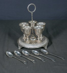 Lot Description:Silver Plated Set 5 Eggcups on Stand