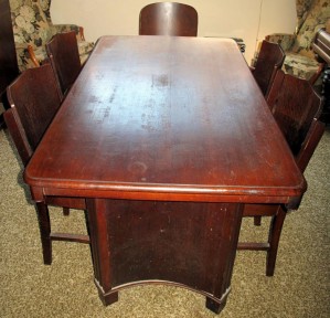 Lot Description:Art Deco timber dining table six chairs