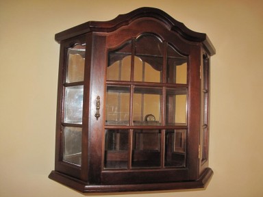 Lot Description:Timber glazed wall display cabinet