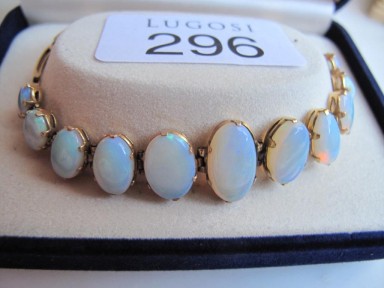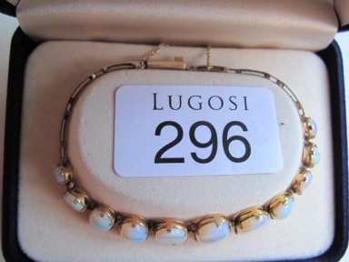 Lot #296 - Antique 14ct gold Australian Opal panel bracelet