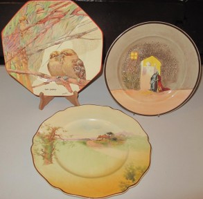 Lot Description:Two Doulton cabinet plates with Royal Staffordhire Twos' Company Kookaburra plate