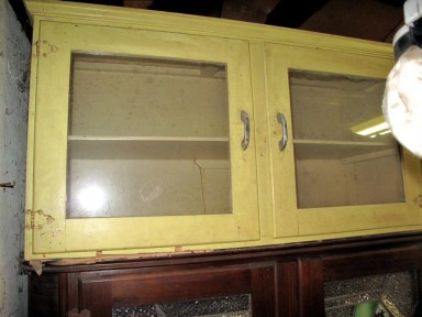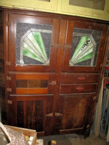 Lot Description:Vintage lead light cabinet with a painted cabinet