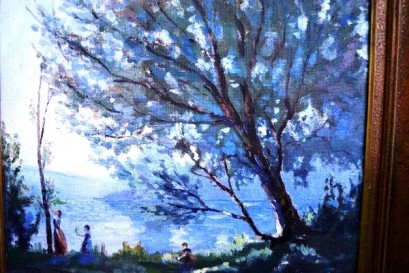 Lot #40 - Artist unknown - 'Playful Figures by Lake'