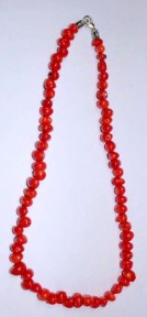 Lot Description:Strand of dyed coral freeform beads with a parrot clasp
