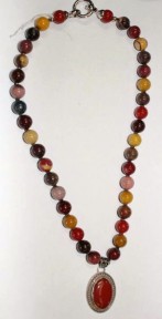 Lot Description:Strand of jasper beads with a central sterling silver jasper bezel set pendant