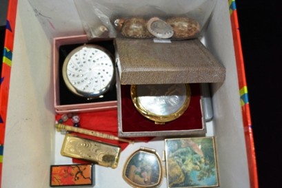 cloisonne ring box, cigarette box with map of Australia, kowrie shells etc -