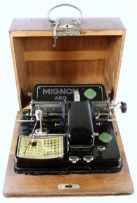 Lot Description:A 1920s German AEG Mignon Model 4 index typewriter in working condition complete with original case