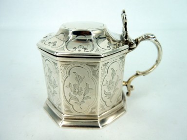Lot Description:A Victorian Silver Engraved Mustard Pot