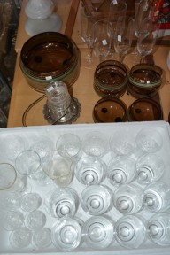 various glasses incl. champagne glasses, tumblers etc plus a pickle jar and silverplate stand -