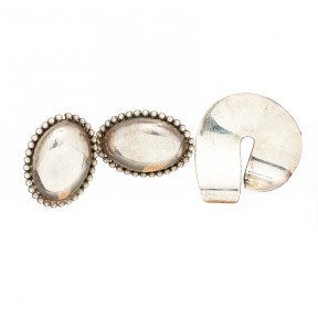 Lot #34 - Pair of Oval Silver Stud Earrings and a Brooch