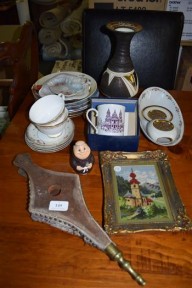 Lot Description:An assortment of sundries including bellows, tapestry, display plates etc