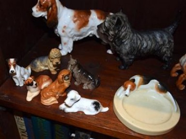 Lot Description:Six various small dog figures including Royal Doulton, Staffordshire, and Worcester together with Royal Doulton Hound ashtray by Doris Lindner