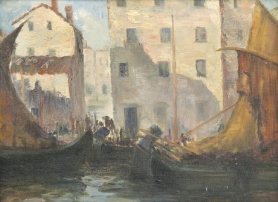 inscribed 'FISHING BOATS ITALY/ H. LEVER' verso