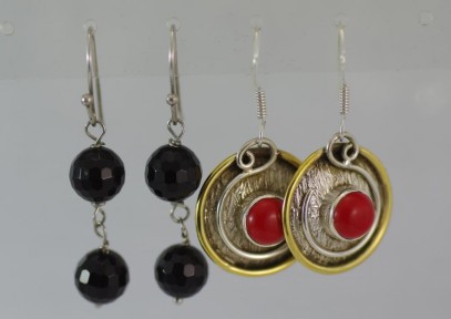 Lot Description:Two pairs of silver earrings(coral &facetted onyx)